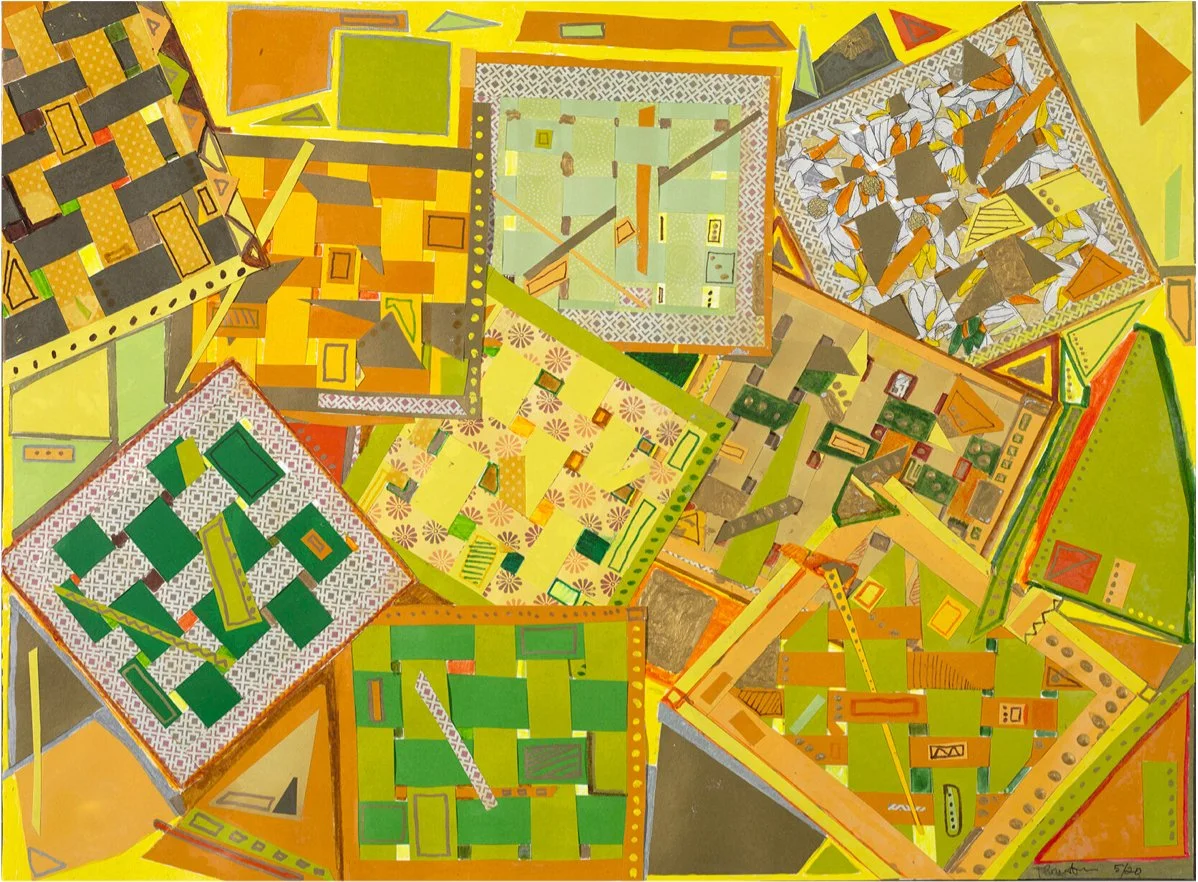 Artist Note: I created this towards the beginning of the pandemic early 2020. This was influenced by my father’s work, straight lines connected in geometric shapes highlighted with gold leaf.